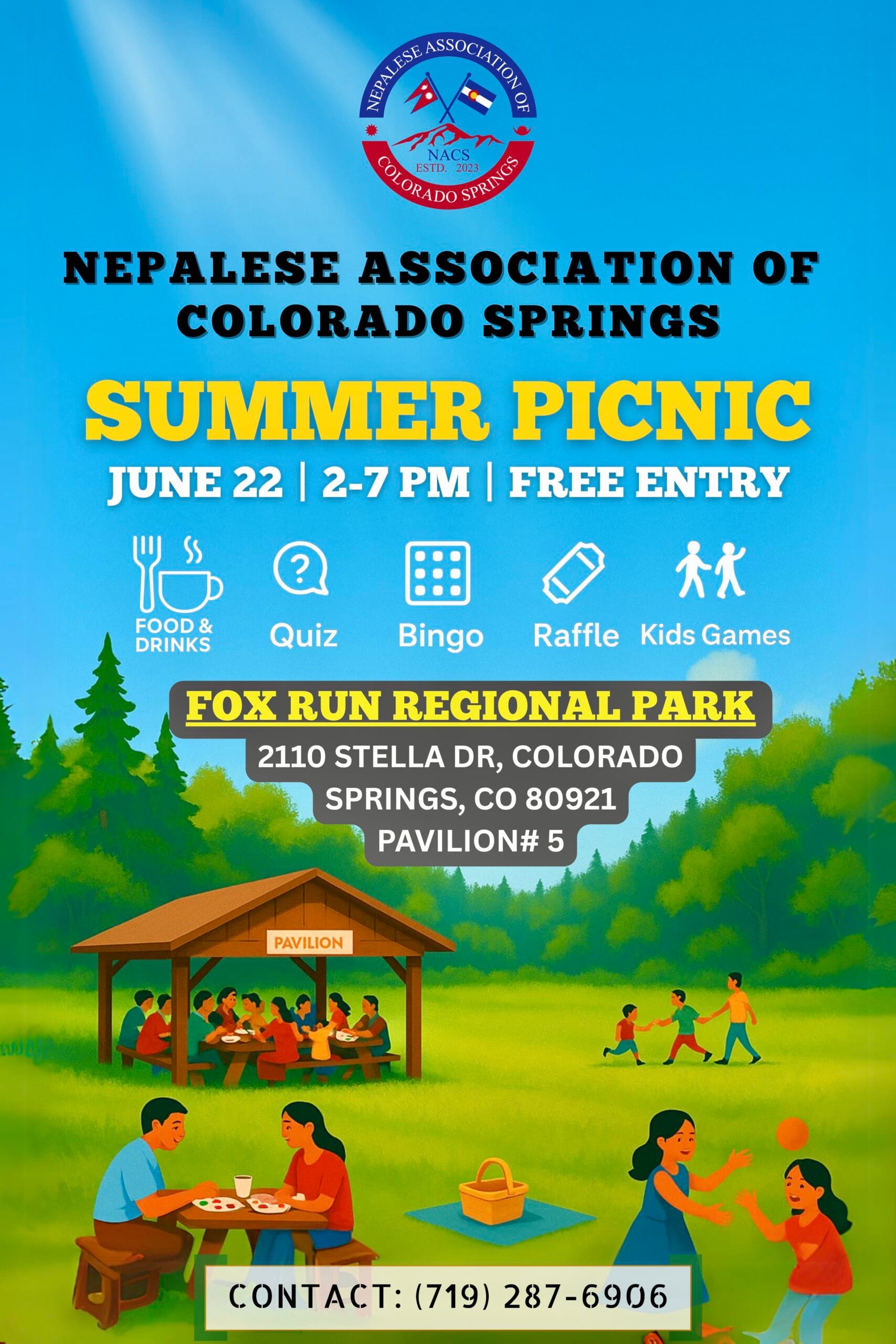 The Nepalese Association of Colorado Springs invites you and your loved ones to our biggest summer event of the year โ the NACS Summer Picnic 2025! This isnโt just a picnic โ itโs a celebration of culture, connection, and community joy.